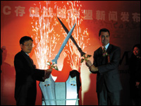 2004年6月15日,在题为“双剑合璧,逐鹿存储”的联合新闻发布会上,浪潮(北京)电子信息产业有限公司与美国EMC公司在北京正式缔结存储战略联盟,携手掀起一场国内中端存储市场的普及风暴。