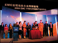 2004年2月27日,EMC公司在京发布了2004年EMC Symmetrix DMX、CLARiiON CX、 Celerra与Centera系统和软件新版本,这一系列产品代表了EMC历史上最广泛的分级存储平台组合,涵盖了高端、中端、网络附加存储(NAS)与内容寻址存储(CAS)的全部系列,帮助客户实现信息在整个生命周期中的最大价值。