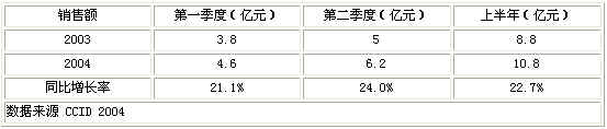 根据CCID的统计资料显示,在2004年上半年,网络存储市场的销售额有了较大增长,销售金额达到了10.8亿元,相比2003年同期的8.8亿元增长了22.7%。