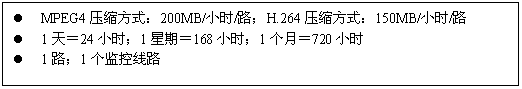 - 1.对存储的容量需求弹性比较大,存储容量的多少随着画面质量的提高、画面尺寸的增大、视频线路的增加都会成倍的增加容量需求。
