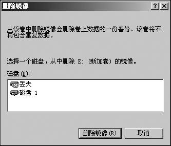如果磁盘被严重破坏,或者不可能修复,在快捷菜单中将只能看到“删除”命令,此时,Windows Server 2003将无法再修复该镜像卷。