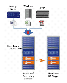 NetApp 方案可以允许定期对所有服务器上的文件进行不可更改的拷贝和对法规遵从数据进行镜像拷贝。LockVault 允许数据块级的增量备份,提供快速恢复能力,将法规遵从和数据保护结合在一起,从而提高企业的数据管理能力。就之前12TB 的例子而言, NetApp方案能够使同样的公司在线存储一年的数据而仅仅消耗 41TB磁盘空间,而用磁带存储将耗费907TB。 NetApp LockVault技术创建了针对非结构化数据的法规遵从在线备份,能够有效降低存储数量的需求,并优化数据恢复能力。