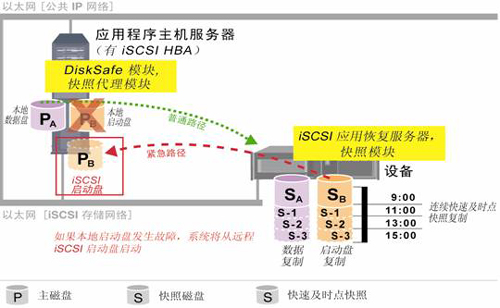 无论是采取磁盘镜像还是快照的方式,保护的都是iSCSI Target磁盘上的数据,万一意外损毁的是应用服务器的系统磁盘,上述的解决方案恐怕都有些力不从心,必须靠双机备份、 集服务器或备份软件提供灾难恢复机制,不过这些传统的灾难恢复机制不是恢复时间过长,就是价格不菲、操作管理复杂,企业在导入时往往费尽心思。