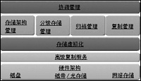 IBM提出的随需应变的存储环境,综合考虑了硬件设施、软件、管理等多个层次,把实现自动化管理设定为最终的目标。IBM用了Orchestration这个词,直译就是管弦乐编曲,意思是希望将存储环境变成像管弦乐协奏曲那样和谐,也就是所谓的协调管理。在这一框架中,IBM着重强调了存储虚拟化和存储管理两个层次。
