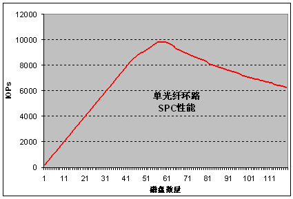 当然,前面的讨论都基于一个假设前提:磁盘(房间)足够多。如若只配置寥寥几个磁盘,它们就会成为整个系统的性能瓶颈。任凭其他配置如何奢华,也于事无补。那么,“足够多”又是多少呢?对光纤通道存储设备来说,每个光纤通道上的磁盘数量达到50~60个的时候性能达到最佳。所以一般中高端存储设备都把每通道50~60个磁盘设计为扩展极限,而不是光纤通道技术规定的126个。