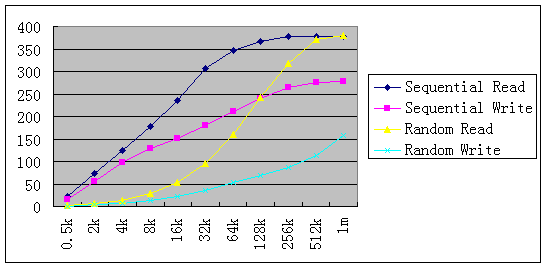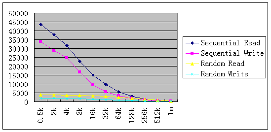 不过没关系,如我们前面提到的,幸好大多数用户其实只需要其中一种性能。要么是大文件类型的应用,需要带宽性能;抑或是小文件类型应用,需要I/O能力。需要带宽的用户相对容易得到满足。从图3可以看出,只要数据块大于128KB,顺序读的性能就基本可以达到系统饱和值。对顺序写,饱和数据块略大一些,但256KB也不算难以达到的尺寸。