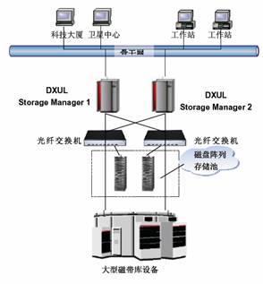 针对总体规划和具体技术要求,我们选择美国嘉道公司的Legato DiskXtender作为存储管理软件。DX是应用于UNIX平台的企业级分级存储管理软件,已为十几个国家的气象系统提供了出色的分级存储管理解决方案。