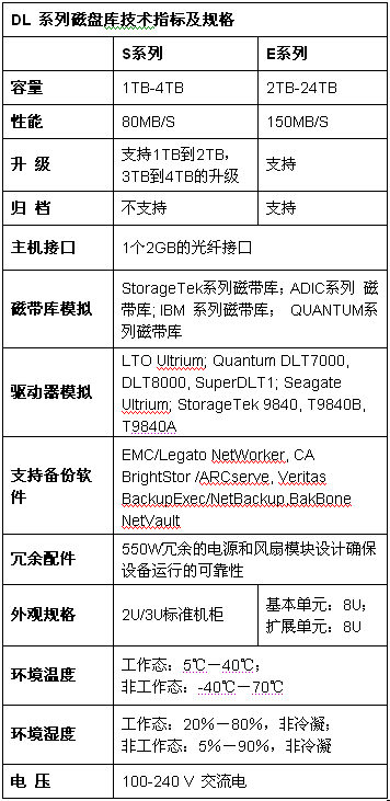作为传统磁带库的一个有益的补充方案, DL系列磁盘库使用基于磁盘技术的数据备份/恢复系统,整合了磁盘所具备的快速访问、数据传输以及RAID的优势,同时利用仿真技术可以整合多种磁带格式及磁带库类型,在此基础上延续了磁带原本的稳定、可写入大型数据块的特点,使得磁盘库成为磁带备份技术发展的未来趋势和主流技术。
