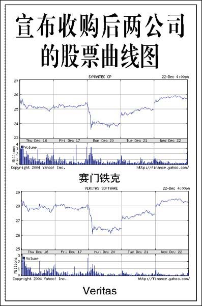 在正式消息公布后不久,赛门铁克和VERITAS的股价都下跌了,这使得并购的初始价值立即缩水11亿美元。这是因为有投资者认为,赛门铁克的快速增长势头可能会由此变缓,甚至有竞争对手对此大泼冷水,认为新赛门铁克的业务发展有一个巨大的绊脚石:两家公司先前所收购的公司都还没有消化完毕,新公司至少会有一段时期无法拿出什么有价值的东西。