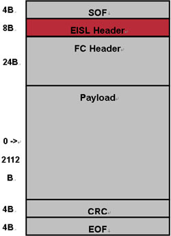 答案: 在一个FC frame中VSAN标识占12个bits。在SOF与frame header之间有一个8B的EISL header。 其中12个bits为VSAN ID. 如下图所示。