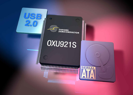 这款桥接芯片为一高度整合的芯片,可大幅地简化PC和Mac平台的外接硬盘和光驱的实行。OXU921S采用128接脚QFP封装,带有整合的SATA Phy、USB2.0 Phy和ARM7TDMI 处理器。该芯片还附带有USB Mass Storage韧体,可确保与标准操作系统驱动程序完全兼容。这种桥接芯片的嵌入式USB2.0 Link和Phy可支持全速和高速模式,并向后兼容USB1.1。