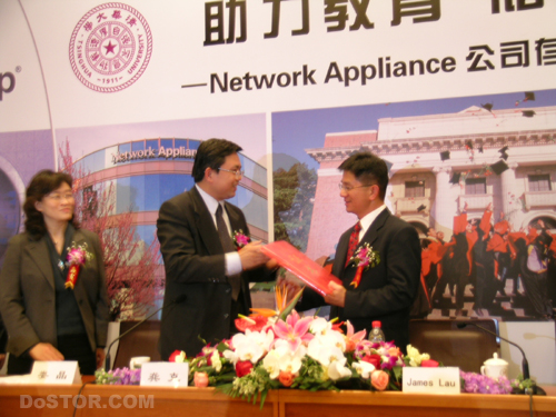 Network Appliance公司创始人、首席战略官James Lau说:“Network Appliance公司为能够给中国顶级高等教育机构—-清华大学捐赠存储解决方案感到骄傲。我们始终致力于同清华大学等著名教育机构合作,以促进学术计算和创新技术在全球教育领域的增长。”James Lau表示,此次NetApp公司向清华大学捐助的设备为FAS940c及相关存储解决方案,支持高端NAS、IP SAN、FC SAN。
