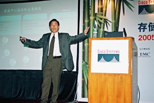 思科系统公司存储技术营销顾问团队高级经理曹图强,就有关“数据中心及存储网络趋势”向与会用户发表演讲。