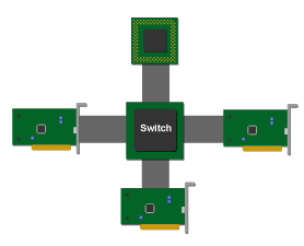 PCI Bus是Share Bus架构,而PCI-Express是一种点对点(Point-to-Point)的Share Switch架构。每一个Device拥有自己的Bus,直接连到Switch Box来建立Point-to-Point通讯方式。以Switch系统等实现Traffic route和资源管理,同时Data传输改为“分散式封包”(Discrete packets of Data)及QOS(Quality of Service)功能,以优先封包(Priority Packets)满足即时资料服务,如:Video Stream及Audio Stream等,为新一代的PCI Bus技术,同时改用Serial传输方式取代Parallel,解决了快速传输时产生的Noise及扩展(Scaling)问题。