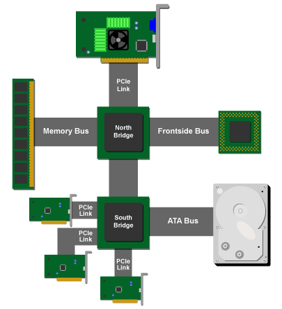 首先,了解PC系统架构,如下图所示,整个系统由北桥和南桥联接。