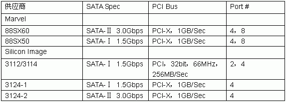 首先列出目前市面上,最通行的9种SATA磁盘阵列控制卡: