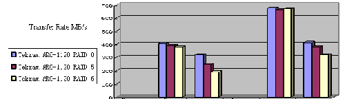 ARC-11XX Series for PCI-X Bus所有System Architecture 相同,以8 Port Tekram ARC-1120为代表,比较在RAID 0,5,6下之Performance