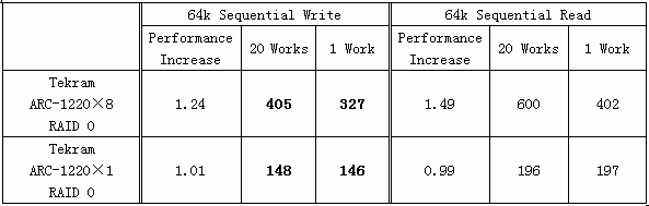 Tekram ARC-1220×8及Tekram ARC-1220×1 Performance比较表: