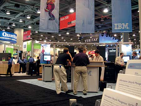 每次VISION会议都会吸引众多存储厂商的热烈参与,近百家合作伙伴将一个偌大的展览大厅布置得好不热闹,其中有些是存储业界巨头,有些是新兴厂商,有些是VERITAS的密切合作伙伴,有些厂商甚至还与VERITAS存在着竞争(又合作)关系。因此,展示大厅俨然成为一个存储用户与几乎所有厂商进行交流的一个良好的平台。用户、代理、集成商、媒体驻足观望,各种类型、各种规模厂商不遗余力地兜售着它们的解决方案。
