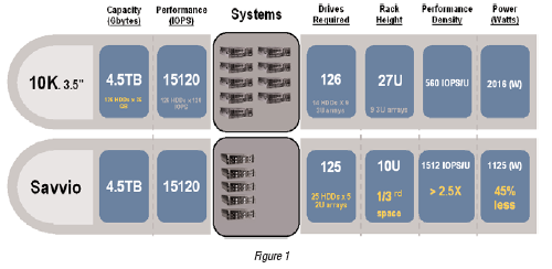 对于希望保持数据中心目前的容量和I/O性能,同时缩小其存储器空间的企业来说,采用2.5英寸硬盘的成本收益是非常可观的,它能缩小机架空间达66%,降低功耗达45%(见图1)。