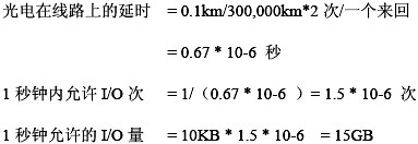 光和电波在线路上传输的速度是30 万公里/秒,当距离很长时,这种线路上的延时将会变得很明显。例如:一个异地容灾系统的距离是1000KM,其数据库写盘的数据块大小是10KB(一次I/O 的数据量),那么:
