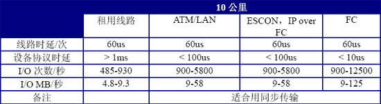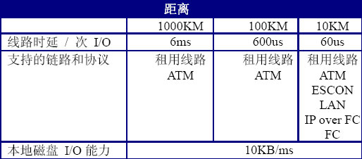 此数据表明,在1000 公里距离上,允许的最大I/O 量在不存在带宽限制时,已经远远低于本地I/O 的能力。(注:上面分析还未考虑中间设备及协议转换的延时)。