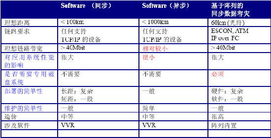 采用软件的数据复制方式(如VVR),一般采用异步方式。这种方式具有对本地系统IO 影响很小,传输距离长的优势,并且可以支持任意磁盘阵列,使得造价相对较小。不足是如果线路速率较慢,会造成故障时轻微数据损失。