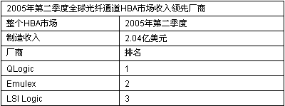 存储在线 8月22日消息:据Dell’Oro集团最新发表的报告,2005年第二季度光纤通道主机总线适配器(HBA)端口出货量比去年同期增长40%多。第二季度QLogic增长最快,紧随其后的是Emulex。LSI Logic尽管仍位居第三,市场份额也有两位数增长率。