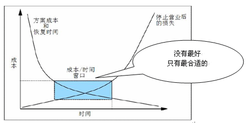 现有市场上的容灾解决方案多数是面向金融和电信业的,成本昂贵而复杂,并不适合政府和一般企业。因此选择一种经济、简单、易用、有效的数据容灾方案以充分适应政府、一般企业特点是建设数据容灾系统的首先要考虑的问题。如下图所示,按经济、易用、满足要求的原则选择最合适的。