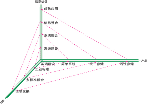 在数据存储平台实现之后,活性存储将进入第二个阶段—-实现信息交换平台。在这个阶段,需要在数据存储平台的基础上,通过信息交换的统一标准,将所有的数据化零为整,将不同数据所包含的信息统合到信息管理中,直接为用户的商业决策和业务活动提供依据和支持,从而将数据的信息价值真正发掘出来。