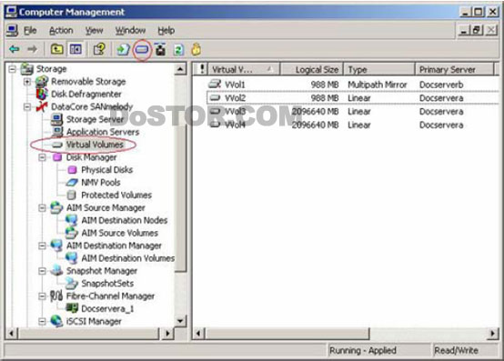 选中下图中左侧窗口的Virtual Volumes图标,然后点选工具栏中“New Virtual Volume”图标