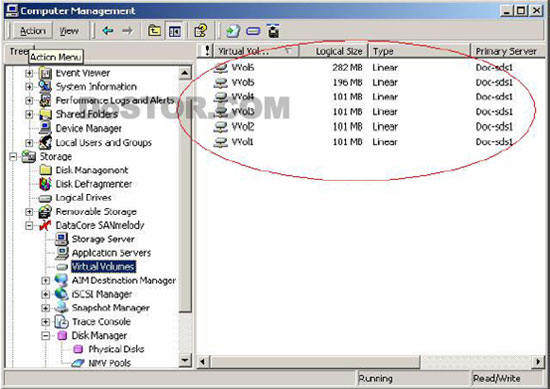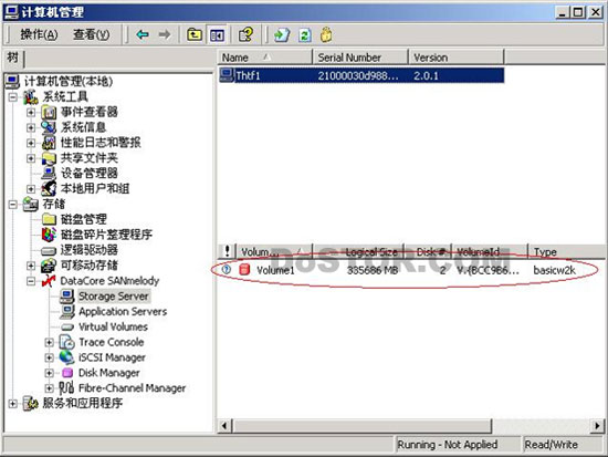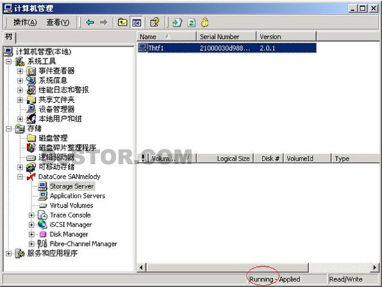 接下来,我们要在SANmelody中创建Virtual Volumes(虚拟卷,相当于磁盘阵列中的逻辑磁盘)。为了简单起见,我们就不使用SANmelody的NMV功能了,这样虽然失去了在线扩展能力,但配置过程会简单许多。