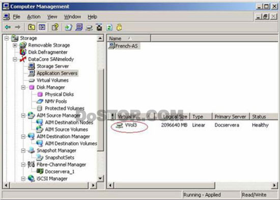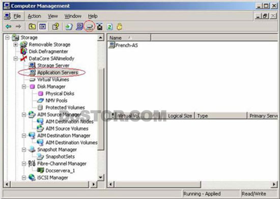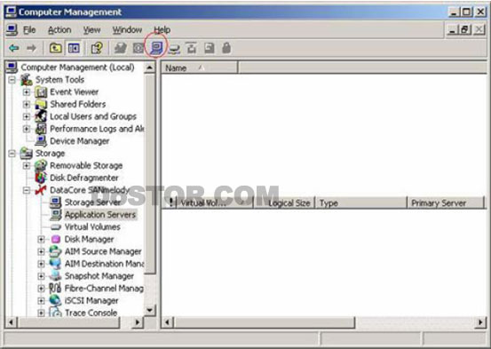 在MMC界面中选中“Application Servers”,单击工具栏的“Map New Virtual Volume”图标