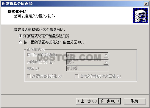 首先要用Windows自带的磁盘管理器创建一个新的空间,用做iSCSI存储空间。磁盘管理创建分区的过程需要注意两个地方。一是不要指定盘符,二是不要格式化。这样的分区才能被SANmelody作为逻辑空间,提供给iSCSI Initiator使用。下面两个截图,就是这两个需要注意的地方。其他的过程都跟创建普通分区没什么区别,相信大家都不会碰到问题了。