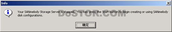 创建分区之后,下面进行SANmelody的配置。首先要做的就是启动SANmelody服务。一般点选SANmelody的“Storage Server”之后会弹出下面这个对话框,点“OK”再稍等片刻,服务就启动了。