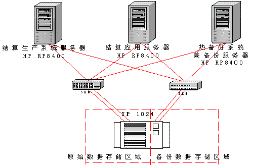 将XP 1024中的1/4存储空间划分为独立LUN,作为备份数据存储空间。该LUN映射到热备份的RP 8400服务器上。