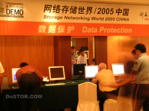 不知道大家看过,是否更对此次的演示架构感兴趣呢,那就去现场看看吧。在SNW 2005举办的两天时间里,演示环境将会对观众一直开放。一点小缺憾就是,大家看到了上面有些图片非常模糊,是因为现场的工作人员不容许笔者拍照的缘故,不知道一直倡导开放性的存储机构,为何会如此?希望只是因为开展前为了防止意外发生而出现的偶然事件。