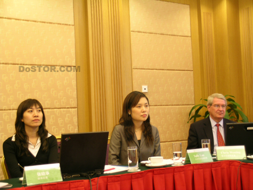 从左至由分别是:EXABYTE公司中国区销售经理张晓华、大中华区经理Sally和亚太区销售总监Chirs Wening