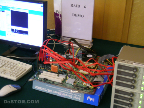 PROMISE在现场展示了VTRAK的M500I和M300潜在系统、SAS JBOD技术以及其传统的RAID卡系列产品。并模式了RAID6的环境,向现场参会观众演示RAID 6运行过程。