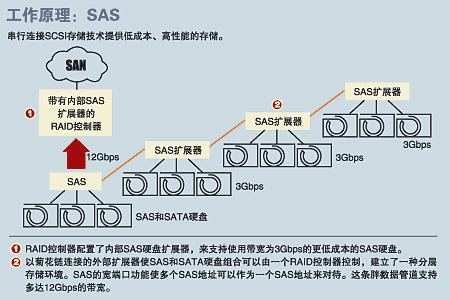 新出现的RAID控制器和存储子系统利用了SAS宽端口的带宽和低成本的优势。SAS通过在混合SAS和SATA硬盘的同时提供一种拓宽数据路径的方法,满足了低成本、分层存储的要求。