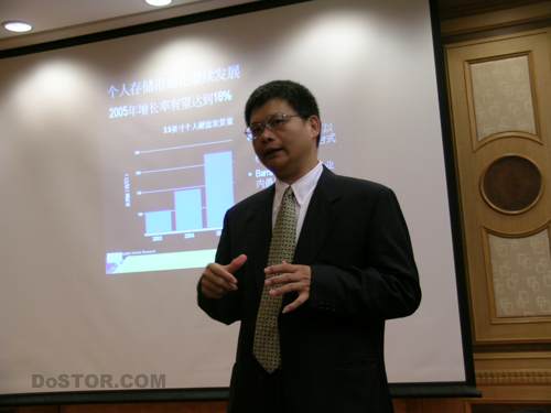 希捷科技北亚区技术行销经理朱秋男介绍说,新的Barracuda 7200.9将发布从40到500G的全线产品。其中,40G的产品只针对某些OEM厂商需求提供,并不会在零售市场上出现。同时他还介绍了希捷在硬盘技术上关注的重点SATA 2.5以及希捷认为将会取代USB和1394接口模式的eSATA 。同时,他也表示Inter已经推出支持eSATA的芯片组及主板,在目前举行的IDF上众多主板厂商也会展出配有eSATA接口的产品。在介绍中,可以看出希捷越来看重企业级市场应用。