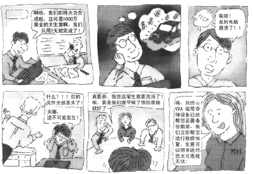 数据备份是对数据的准确复制,当原始数据遭到破坏的时候,您可以用备份的数据重新恢复数据。因此,数据备份就像为您的数据购买了保险一样,是保护您宝贵资产的重要手段?D?D不要忘记,数据是您企业的生命线。