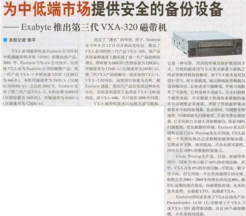 DoSTOR存储分析 Exabyte战略调整 撤离亚太区