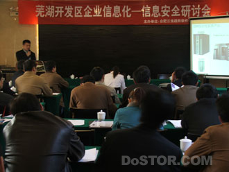 2005年11月25日-27日在安徽省天柱山古井大酒店召开信息安全解决方案研讨会。此次会议云集了知名的存储备份厂家-美国StorageTEK公司、TrendMicro、SonicWALL等各大数据安全厂商的精英。