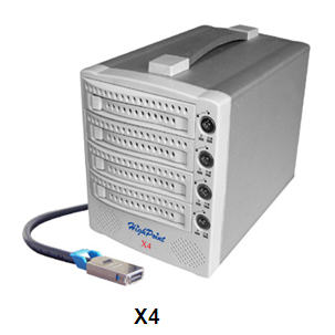 很多厂商先后推出了InfiniBand技术相关产品,HighPoint当然也不示弱,推出了带有InfiniBand接口的RocketRAID 2240、RocketRAID 2224等主机适配卡以及一带四盘位模组硬盘盒X4。