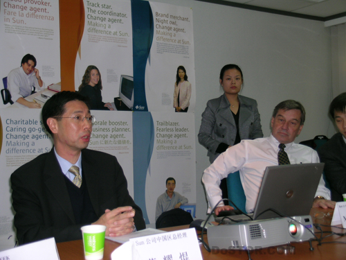 薛耀昆:我们现在在中国已经是一家公司,是一家人。我们对外的名片、名称已经统一,StorageTek已经是SUN的一个品牌。在中国,我们一直按SUN总部的要求在推进合并工作。在中国的合并工作进行得很顺利,当然还有很多细节需要继续。
