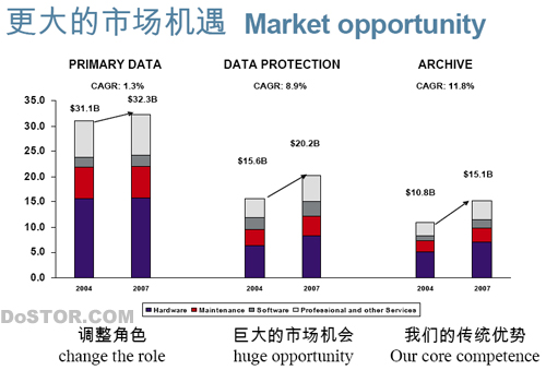 其实上,StorageTek最大的大型机客户,也是SUN最大的客户,他们都是IT界的最大客户。刚刚在华盛顿结束的论坛上,DMG提出了明确的策略,也对世界各地主机厂商做出了承诺,将继续发挥StorageTek的专长,继续服务高度异构的客户环境。随着两家公司的联合,两家公司的研发投资将更加有重点。过去两家公司在存储产品方面的研发是竞争关系,但是现在两家联合在一起,这样可以有更充足的研发资金,为全线的涵盖各个市场的存储产品做好研发工作。
