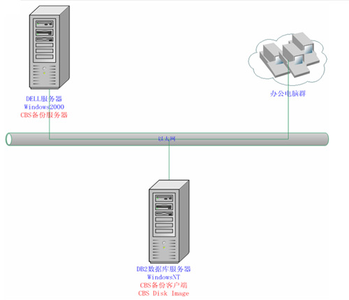 方案采用 思创科达公司 的 CBS Disk Image 灾难备份方案是目前业界唯一的已有大量成功案例的基于存储的灾难热备份方案,它可以使 思创科达公司 的容灾系统有选择的对 DB2 数据库进行实时的热备份,在出现异常情况时,最大限度地保障用户数据不会丢失和应用系统连续性,该容灾方案可以充分满足用户对容灾系统的要求。该容灾系统的建设如下示意图所示: