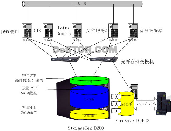 - 4TB虚拟带库容量从SAN环境中高端磁盘阵列上划分,提高备份系统的性能与可靠性