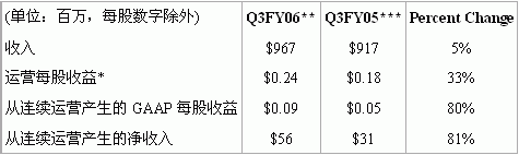 2006财年第三财季财务结果一览